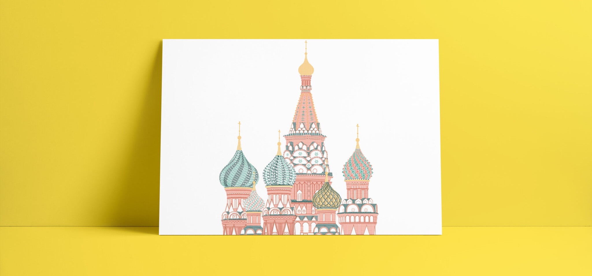 Illustration du Kremlin de Moscou entièrement en typographie cyrillique.