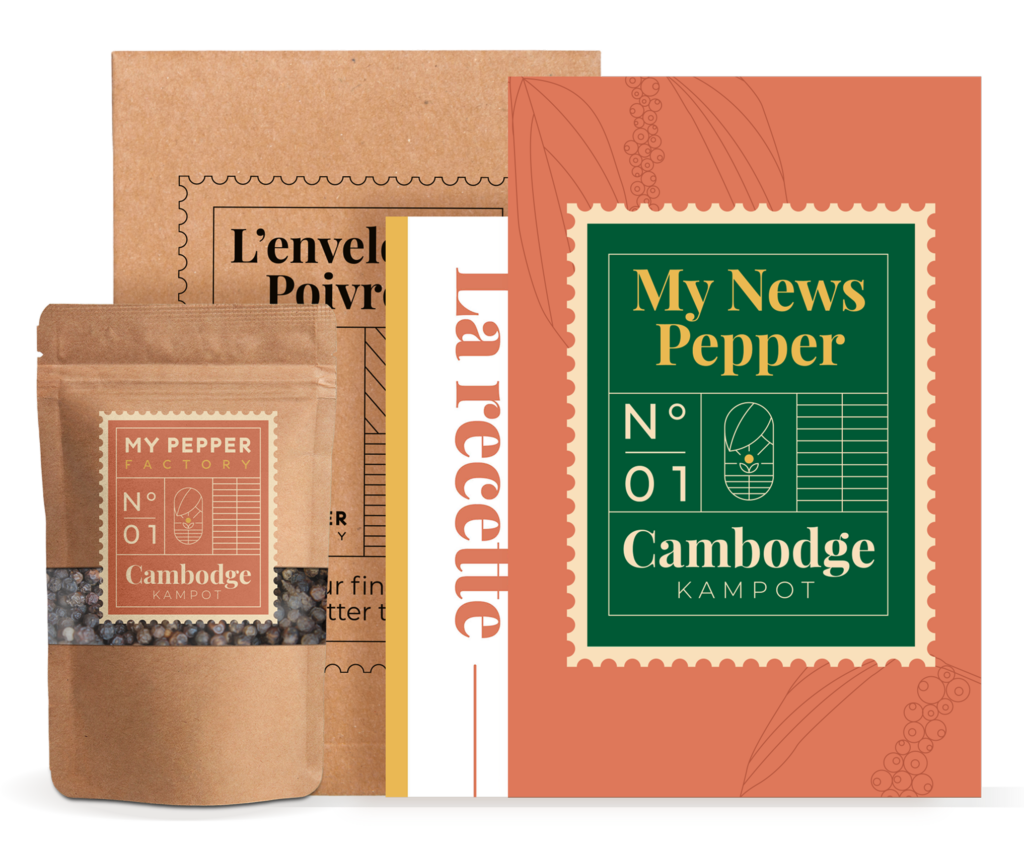 Conçue comme un voyage, tant gustatif que culturel, l’Enveloppe Poivrée contient un sachet découverte de poivre, une gazette explicative ainsi qu’une fiche recette.